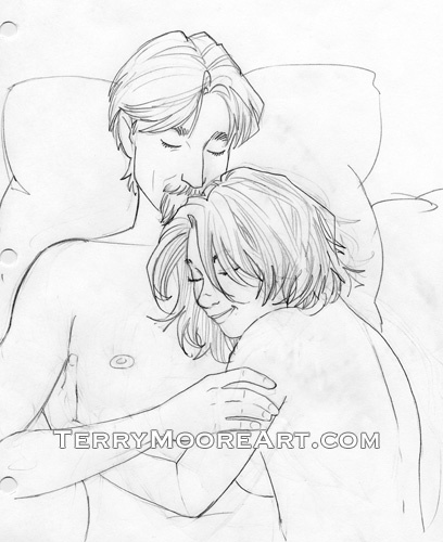 For real. Robyn came up with that one. I had Hot Girls & Even Hotter Terry. She nixed that. Price on this sexy jewel will be $11, just $1 more than the B&W Kinkos books (which admittedly are very limited). Start saving your pennies now and you will see a ton of art that never made it into the published books. Like this sweet couple…