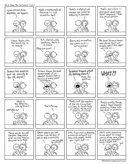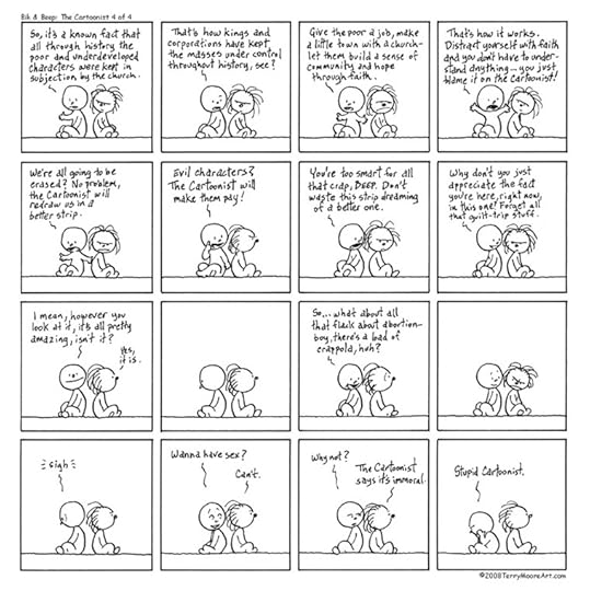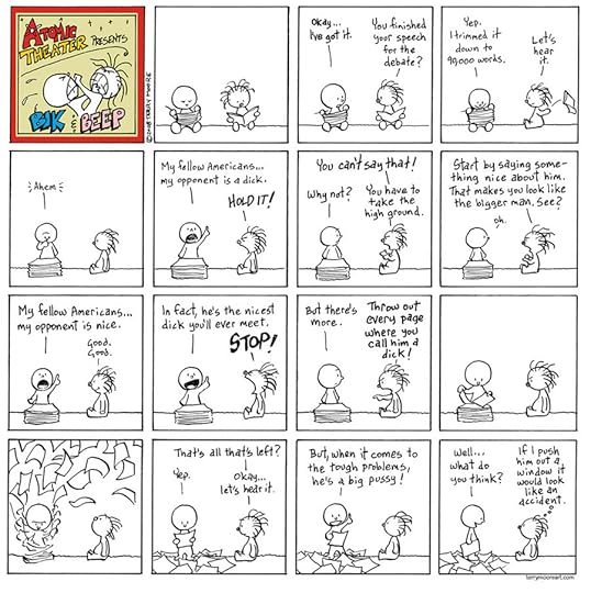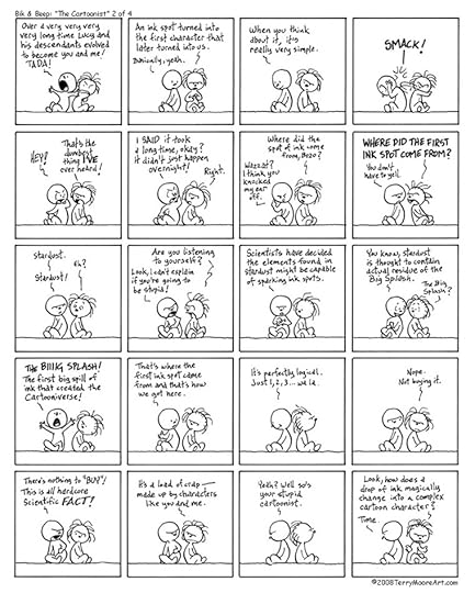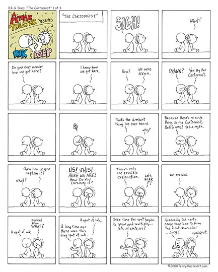 Bik & Beep argue the classic debate. I scribbled this cartoon on a long plane flight and posted it in 2008. Wanted to bring it back up to show somebody. You can look, too.
