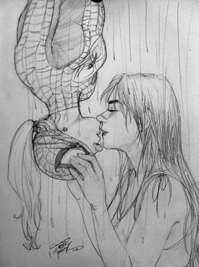 “Francine and Katchoo as Spider-Man and Mary Jane in the famous kiss scene”