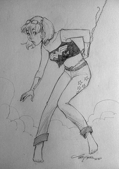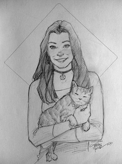 I took a short list of sketch requests at Wondercon. The only record I have of them are these cruddy iPhone photos, but they should give you and idea of the drawing at least. The customer request is in quotes.