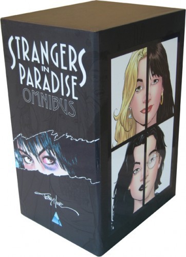 Now, finally, we are making an affordable, softcover version. The Strangers In Paradise Softcover Omnibus box set includes the same two 1200 page books containing every page, every story ever printed relating to SiP! The price for this 2400 page collection in a boxed slipcase? $100.