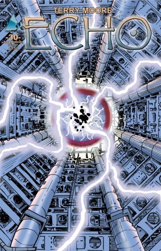 Almost immediately after I finished making this book, the final issue of Echo, my computer hard drive died and took the Photoshop cover file with it. Please, no backup comments—you had to be there. I remember sirens and screaming, the sun in my eyes and dogs eating my cables, and before I could reach the keyboard a bolt of lightning shot out of my nose and the screen went gray. I’m not saying that’s what happened, I’m just saying that’s how I remember it.