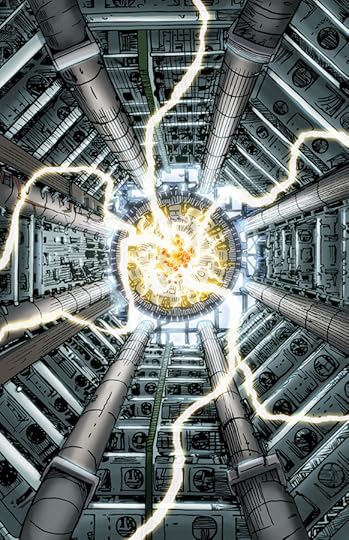 Anyway, to accomplish this, I removed the lettering (it was hand lettered on removable labels) rescanned the page, cropped down to the middle panel and turned it -90 degrees to get as much vertical as possible. Then I did my Photoshop color thing on it and BAM! I had my cover of the Large Hadron Collider without having to redraw the LHC. Yay me. I turned the book in and CRASH!