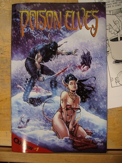 I heard Drew’s friends and family were resuming production of Poison Elves, creating new stories from Drew’s own notes and outlines. When I was contacted about drawing a cover, I immediately thought of the pinup and they agreed to use it. My cover will be extremely limited—the C cover of three variants—so if somebody wants this specific cover they’re going to have to hunt for it. Unless they read this blog. I got my copies today—a dozen or so. I only need 3 for my archive, so I will sell the rest in a few weeks when I know what the price should be. I promise it will be less than eBay.