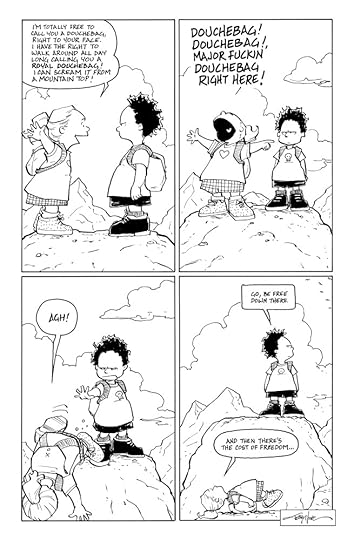 At some point this year, the Comic Book Legal Defense Fund will release a comic featuring vignettes and short stories about freedom of speech. To draw attention to this worthy organization and the book that will help raise funds for their cause, I thought I’d show you my 2-page contribution. I call it, DOUCHE BAG!