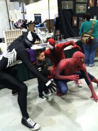 Naturally the point of it all is to have fun, so it was a kick to see things like this, a boy posing with Spidey and crew.