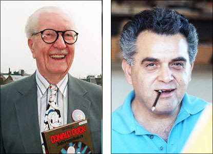 I just happened to be around at what I believe was the only time they met. It was at some Comic-Con International — don't ask me which one — and while Barks was not an announced guest, he and his wife showed up for a day and sat at a table where Bruce Hamilton was selling the kinds of things, including Carl's work, that Bruce used to sell. Carl was not mobbed because I don't think most people who would have killed to meet him knew he was in the hall so I was sitting there, talking with the Barkses.
