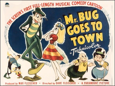In 1939, Fleischer Studios — the folks who brought you Betty Boop, most of the good Popeye cartoons and many others — released Gulliver's Travels, their first animated feature. It was a pretty big hit so they immediately made another feature…Mr. Bug Goes To Town, which was made for the 1941 Christmas market. It turned out to have two problems, one being that a few days after it was previewed, Pearl Harbor was bombed and America turned topsy-turvy. The other problem was that a lot of people didn't like Mr. Bug Goes To Town, at least not as much as they'd liked Gulliver's Travels.