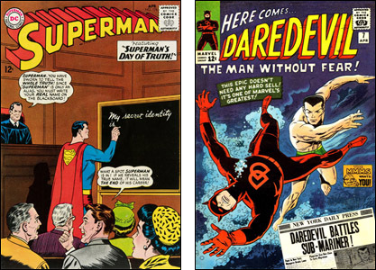 DC's too often had the hero standing around uttering word balloons that described the premise of the story. Marvel's had the heroes in action. Here are two covers that were on newsstands in February of 1965. Which one do you think would attract more buyers?