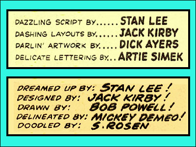 Very few artists who sought work at Marvel then could do what Kirby and Ditko and just a few others did, which was to take one of Stan's rough plots — which could be as sparse as one or two sentences and have originated with the artist in the first place — and turn it into 10 or 20 pages of penciled art for which Stan could then write dialogue. Joe Orlando quit after just a few stories because he'd pencil the story out, bring it in and Stan would make him (he claimed) redraw half the story. There was nothing wrong with the pictures Joe drew. They were just the wrong pictures, Stan felt. He didn't like the way Joe had developed the story they'd discussed.