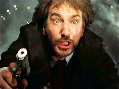 In my lifetime (72 years plus change), I have often — not always — seen my Bad Guys eliminated or punished or even in at least one instance, killed…but it's never as immediate or simple or even as satisfying as seeing Alan Rickman realizing his plan has been foiled and he's plunging to his death. If you're expecting a Bad Guy of yours to meet a similar fate in the real world, you'll probably be disappointed. Some of my Bad Guys took a long time to plunge and probably never realized what they'd done and how they were paying for it. But they did go away. I have had to learn to be content with that.