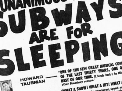 This is a partial rerun of a post that ran here on February 21, 2002 but down below, there will be a little line and everything below the little line will be new content. It's about a Broadway show that I have never seen called Subways Are For Sleeping…