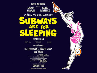 The show the three of them had done just before it was Do-Re-Mi, which was a hit and before that, they'd done Bells Are Ringing, which was an even bigger hit and later Comden and Green did On the Twentieth Century with Cy Coleman. Those were three successful shows that I really liked. The director of Subways, Michael Kidd, had plenty of hits to his credit and there were some stars in the cast — Sydney Chaplin, Carol Lawrence, Orson Bean and Phyllis Newman. Ms. Newman's wardrobe for the entire show consisted of a bath towel and you'd think that alone would have sold some tickets.