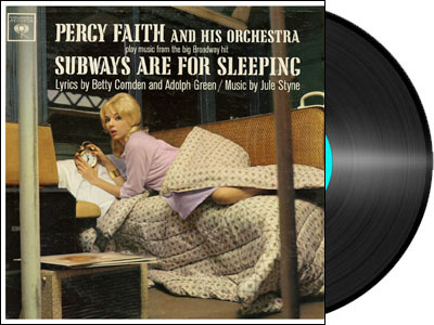 So what went wrong such that Subways closed so soon and is almost never revived? It was suggested that its basic storyline — about homeless people who used subway cars as sleeper compartments — turned off a lot of New Yorkers. Well, maybe. I'm among those many who've never seen the show and I can't seem to find a copy of the script anywhere. But I do have the cast album and I also have the record below, which was made by Percy Faith and his Orchestra featuring instrumental-only, jazzed-up recordings of the songs from the show. Mr. Faith and that orchestra of his did a lot of records like this and he always made the material sound really good…