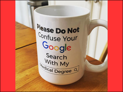 Only a few people have ignored my wishes and sent me medical advice. A lot of folks have endorsed my belief that not listening to people who think they know as much as doctors but aren't one is a healthy choice on my part. I saw this mug online and I think I want to get a couple and give them to my physician, my orthopedist and a few others…