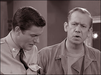 "Sol and the Sponsor" didn't air until April 11 of the following year where it was Show #29 of the thirty Dick Van Dyke Shows made for that first season. By then, Marty Ingels had probably figured out he was no longer part of the series. And if he didn't know it then, he sure knew it by Show #17 of the second season. It was another flashback to Rob's army days and in it, his best pal was Sam Pomerantz (Sam, not Sol and Pomerantz, not Pomeroy) and he was played by Allan Melvin.