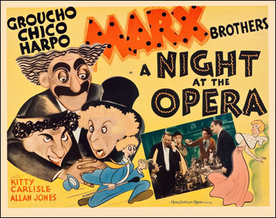 That night Rob and I saw it and the follow-up film at the State, a person of indeterminate expertise gave it a brief intro in which he said that A Night at the Opera had first played at that theater. Did he mean that was where the supposedly-disastrous preview took place? Or the more successful preview either that night or later? Or maybe it was where the film debuted locally when it went into general release? Or did that person even know what he was talking about?