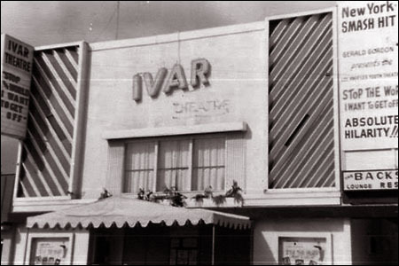 I have occasionally mentioned the Ivar Theater in Hollywood on this site. It's an unremarkable little theater that at various times has seated between 250 and 350 and has gone through many changes.