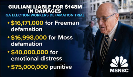 I think what's been going on with Giuliani in his recent trial has been a matter of trying to have it both ways: To settle the lawsuit for the lowest amount of cash and to retain whatever credibility and popularity he might still have with the MAGA crowd…and I don't think that was humanly possible. Earlier this year, his attorneys in the defamation case submitted this stipulation…