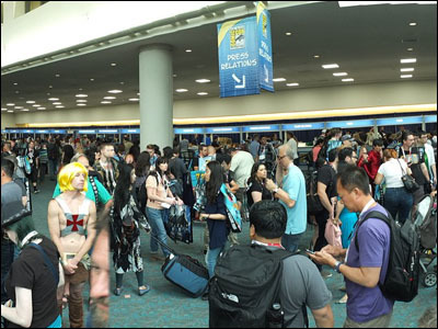 A friend I know asked me, "Wouldn't it be great if they could somehow double the size of that convention center?" Well, maybe. But they'd also have to double — preferably, more than double — the number of available hotel rooms and parking spaces and places to eat and also widen the roads in and around that area and get the Amtrak Pacific Surfliner to put on about twenty more train cars and airline tickets to San Diego that weekend are already hard to get just before the con…