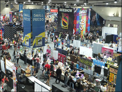 One [guy] actually came up to me on Sunday and started bitching about all the focus on the movies and the Hollywood celebs and such. Now, my attitude about the Comic-Con (oft-stated) is that the con is really a dozen or more cons rolled into one. There's an anime con in that building, an animation art con, a small press con, a Golden Age comics con, a gaming con, etc. Some of them don't interest me in the slightest so I sidestep those aisles and find the con I want to attend. I always seem to be able to find it. Unless you're dying to attend a sparsely-attended gathering, the one you seek is in there somewhere. Don't let all those other conventions annoy you or distract you.
