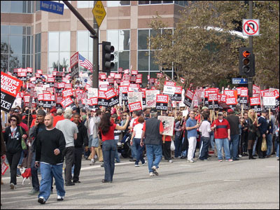 Already, I'm seeing angry posts on message boards from folks who work in the entertainment industry but who are not writers. They're angry because they know production will slow to a trickle and some of them will be laid off or not hired. Too many of them leap to blame "greedy writers" instead of producers who want everyone to take less. I wish more of those folks would understand that if we get rolled back, everyone will eventually get rolled back. These strikes are never just about one labor organization's compensation.