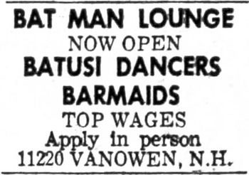 That ad is dated 1966 which is right when you'd figure someone would open such a place figuring to cash in on the Batman craze. They might even have had their grand opening during the hour-or-so that the Batusi was a popular dance craze.