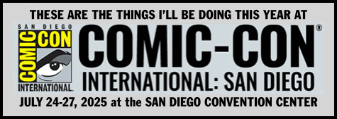 Comic-Con International starts in two weeks and the convention has just posted the schedule for Thursday Programming. Tomorrow, they'll post the schedule for Friday Programming and on Saturday, they'll post the schedule for Saturday Programming and you might be able to take a wild guess and figure out when they'll post the schedule for Sunday Programming. The entire Thursday Schedule is here but if you're interested in the panels that really matter, here's what I'm doing on that Thursday…