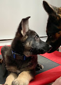 Lastly, here we are in front of Mount Katahdin. This IWSG optional question is: Everyone has a favorite genre or genres to write. But what about your reading preferences? Do you read widely or only within the genre(s) you create stories for? What motivates your reading choice? I tend to gravitate to romance and/or character based stories and also middle grade fantasy, adventure, and coming of age stories - all are what I write. But I'm always open to reading any story if it's well-written and enticing. I also like to read articles and short stories that are completely out of my norm. Sometimes I purposefully pick up books like that as well, using them to challenge myself through content, structure, craft, and technique. I always learn something knew when I do that, so I'd totally recommend it. One last thing, I'd love for you to meet the newest member of our family - ASHER! He's a nine-week-old German Shepherd puppy and new little brother to our current two-year-old GSD Sadie.