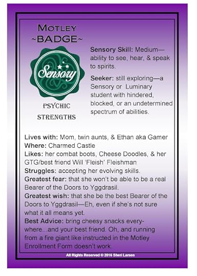 I'd tell you about her, but she's insisted on sharing the deets about herself her way. Nothing like a know-it-all tween, eh? So I'll let the back of her trading card speak her words: