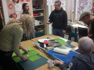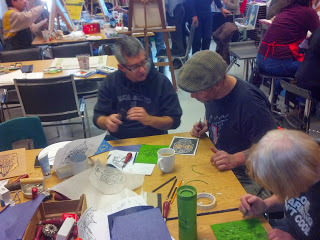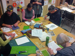 I was asked to come and give a "how-to" presentation. We all sat together for about three hours, making designs on paper, transferring that to a block and then cutting into our blocks.