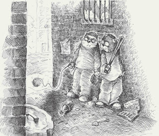 Cindy looking at the Blister Sisters as they cheer on their father, the revolting referee of the title.