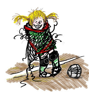 I tried to capture the energy of the athlete with quick darting lines and (mostly) bold solid colours.