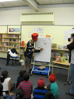 To wet your whistle, here's a pic of me giving the kids my patented 5-second cartooning class!