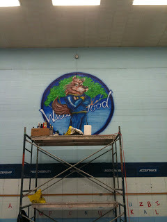 A while back I blogged about a wolf logo I designed for my friend Sean's School. Well, now they are painting an official version on the gym wall... so COOL