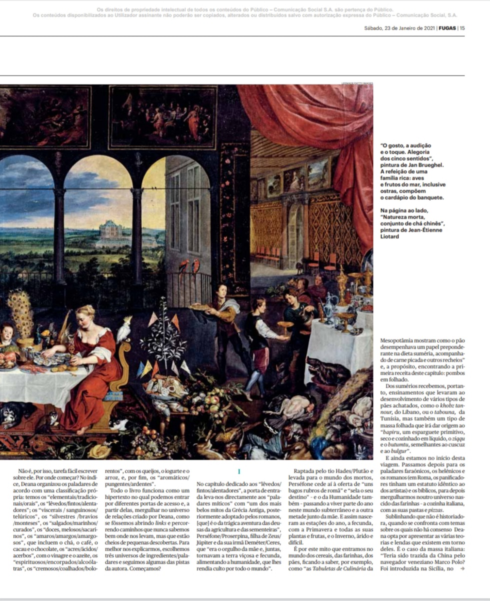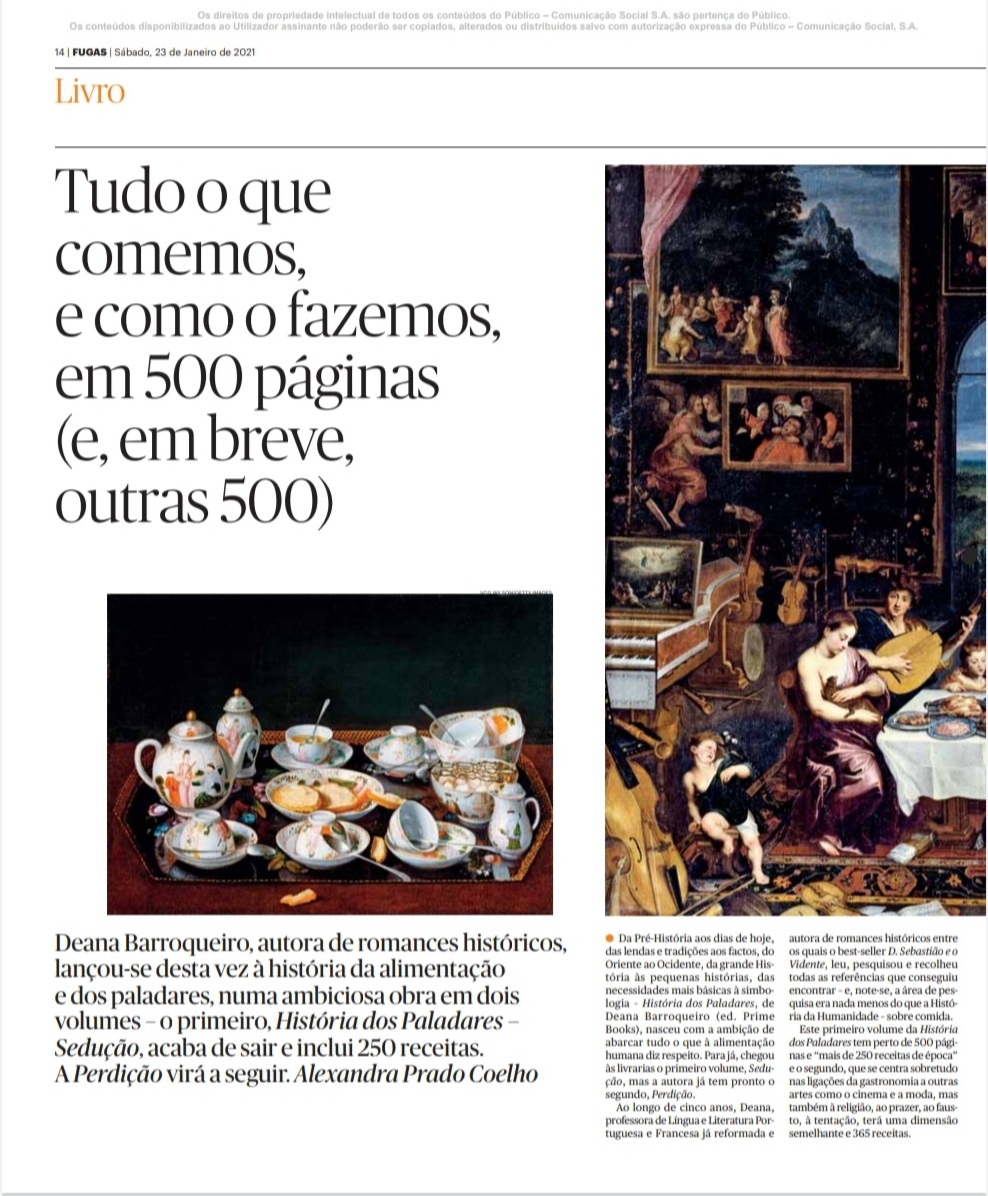 O artigo de Alexandra Prado Coelho na Revista Fugas, do Público, de 23 de Janeiro 2021, sobre a História dos Paladares, Vol. I- Sedução