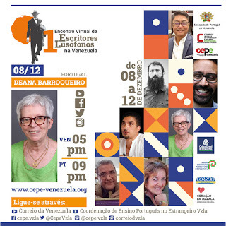 No próximo dia 8, terça-feira, Deana Barroqueiro participa, como representante de Portugal, no 1º Encontro Virtual de Escritores Lusófonos, promovido pelo Instituto Camões e pela Embaixada de Portugal, na Venezuela, o qual vai decorrer de 8 a 12 de Dezembro, pelas redes da Coordenação para o Ensino da Língua Portuguesa na Venezuela.