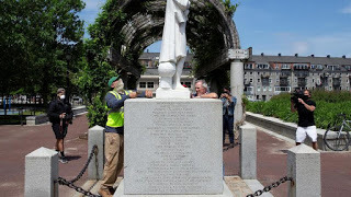 Mutiladas as estátuas de Colombo e de outras personagens históricas, nos EUA (irão renegar os pais fundadores da nação, que tinham plantações com escravos?). Isto é também um vírus e não se cura com o confinamento, nem com a vacina, só com Estudo e Cultura.