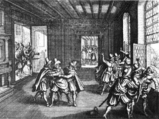 – Não duvido de que Deus nos ajudou porque fizemos uma revolta quase sem derramamento de sangue, coisa raríssima que espantou todas as nações da Europa – diz Dom Álvaro, assim que o alvoroço sossega, retomando o fio à sua história. – Não podíamos deixar Miguel de Vasconcelos com vida, mas queríamos evitar mortes desnecessárias. « Dom António Telo entrou na Secretaria, a fim de cumprir o juramento que fizera de o matar com as suas próprias mãos, mas não achou rasto dele. Quando se preparava para prosseguir com a busca em outras salas do paço, uma escrava que, se refugiara assustada a um canto, apontou para um armário de papéis contra o qual disparou dois tiros. Ouviu-se uma restolhada e o traidor, perdida toda a arrogância e a tremer de medo, saltou de dentro como uma mola, escancarando as portas, com uma clavina engatilhada, atirando à toa, antes de cair ferido ou moribundo. Muitas mãos apoderaram-se dele e, erguendo-o no ar, defenestraram-no.