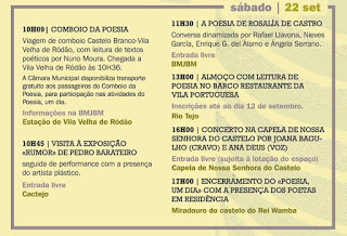A minha primeira sessão com os leitores, neste início de ciclo de actividades Outono/Inverno. Se os meus amigos das Beiras estiverem por perto e quiserem conversar comigo, ficarei felicíssima por matar saudades. Em Vila Velha de Ródão, 21 de Setembro, às 15.30.