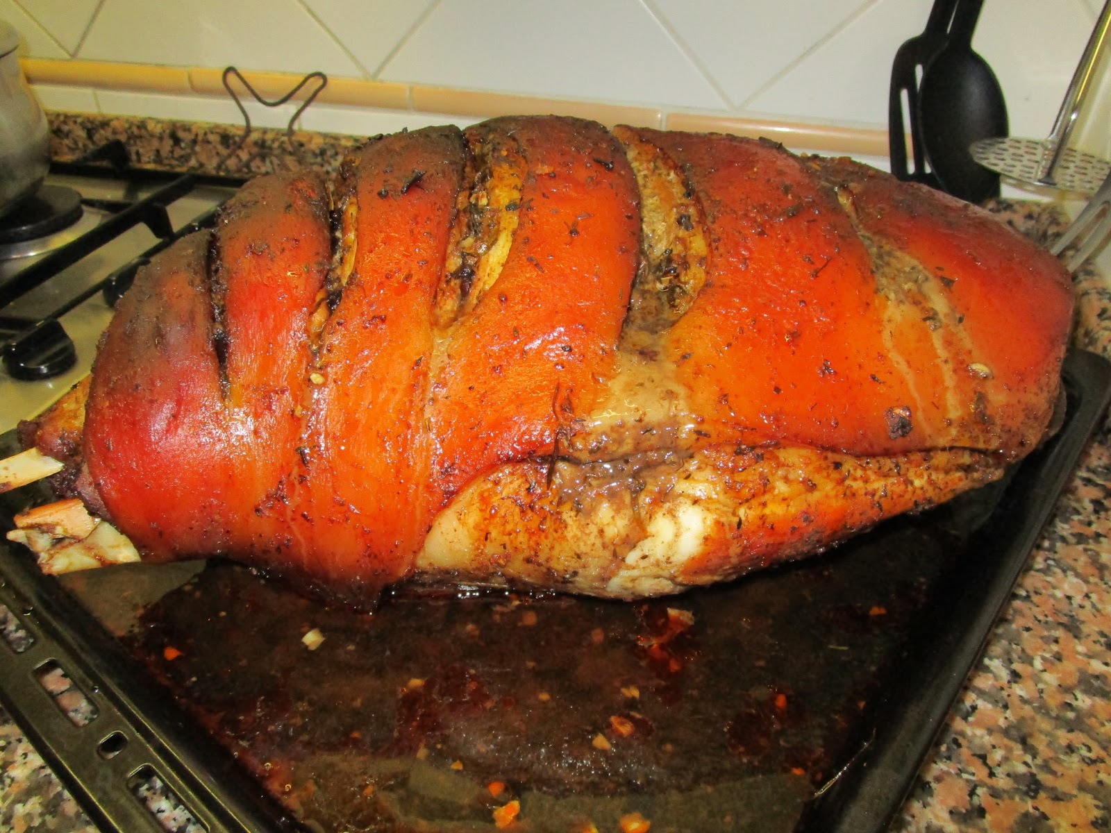 Na falta do javali, o pernil de porco foi cozinhado da mesma forma, com todos os «adubos» e «cheiros» da época