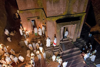 Partida para o aeroporto, onde embarcaremos num voo doméstico para a cidade mágica Lalibela. Almoço, após a chegada, seguido de alojamento no caravançarai Tukul Village ou similar. Tempo livre para descanso. Após o jantar no hotel Tukul Village, visita das igrejas escavadas na rocha, a “Jerusalém Africana”, para assistir às cerimonias de Fasika, vigilia da sexta feira santa da Páscoa Etiope. O conjunto de igrejas de Lalibela foi declarado Património Mundial da UNESCO em 1979 e é o principal local de peregrinação para cristãos ortodoxos. Onze igrejas, divididas em três grupos, separados pelo rio Yordanus, construídas em blocos monolíticos, com uma precisão matemática impensável para a época. Regresso ao caravançarai para dormir.
