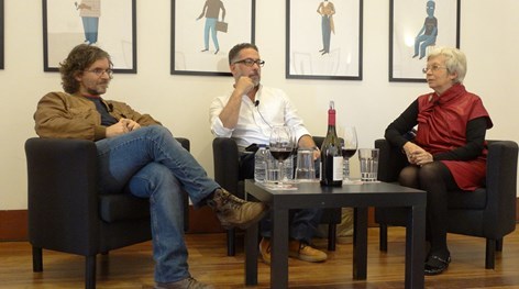 Os comentários apreciativos sobre o "néctar dos deuses" começaram na sala principal, onde decorreu a prova de vinhos, e prolongaram-se nas mesas em que cerca de 20 autores conversaram sobre a ligação do vinho com a criatividade. Não havia debate sem que os convidados brindassem com um copo de vinho do Dão. "Esse magnífico saca-rolhas", como disse Tchekhov, facilitou a fluência dos diálogos. E isso viu-se logo na primeira oportunidade.