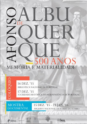Vou participar, no dia 16 de Dezembro, às 14.30, na Biblioteca Nacional, neste colóquio sobre Afonso de Albuquerque, com uma comunicação a que dei o título (dei 2 à escolha, mas a organização juntou-os): «Afonso de Albuquerque, da realidade à ficção - A matéria de que são feitos os mitos». http://albuquerque500.blogspot.pt/PROGRAMA