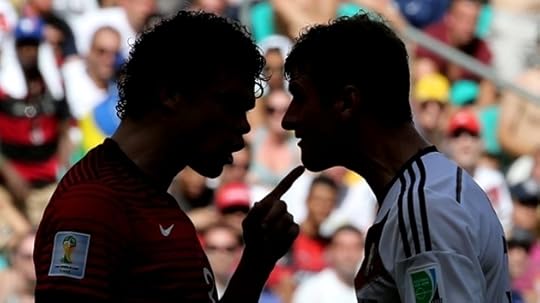 Muller é o herói desta película. O avançado alemão marcou três golos e esteve no momento em que tudo muda, quando Pepe, vilão da história, não foi capaz de se controlar. Com o jogo ainda sem tendência clara, a Alemanha, mais organizada, chegou ao primeiro golo, através de uma grande penalidade cometida por João Pereira. Muller fez o primeiro. Meireles e Moutinho faziam parte do elenco, mas foram substituídos por duplos. Os dois médios não destruíram, não construíram e era por eles que poderia passar grande parte da reacção. A imperturbável Alemanha foi assistindo à queda da selecção nacional e aproveitou as ofertas. Hummels ganhou o duelo a Pepe, num canto, e marcou o segundo. O central português deixou-se levar pelo erro, ficou perturbado, e ainda antes do final da primeira parte deitou tudo a perder. Muller, aí está o protagonista, queixou-se de um toque e Pepe reagiu. O árbitro pode ter exagerado, mas um jogador do Real Madrid, da selecção portuguesa, um campeão europeu, não deve expor-se assim.