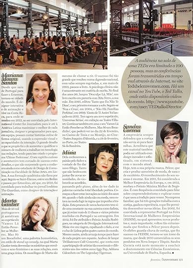 LUX WOMAN Fevereiro 2014: Sinto-me muito lisonjeada por ser considerada uma Mulher inspiradora! Muito obrigada, Isabel Canha e Maria Serina, pelo convite para o TEDxBelémWomen! E foi um privilégio estar com as seis companheiras, essas sim, verdadeiramente inspiradoras!