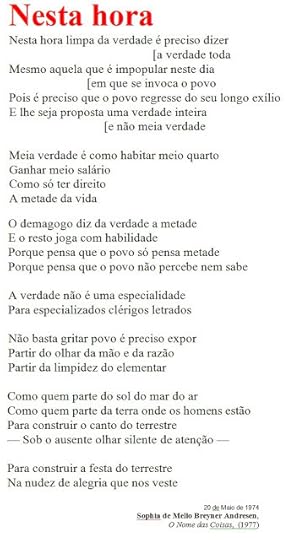 Um poema de Sophia de Mello Breyner Andresen que, visto hoje, parecia profetizar o tristonho destino do nosso país, tão mal governado por quem não tem um pingo de consciência social, nem ideia do que é a solidariedade para com os mais desfavorecidos do povo que governa, preferindo ser engrenagens de uma máquina de criar pobreza e desiguladade.