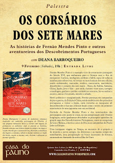 CASA DO FAUNO - SINTRA, 9 de Fevereiro, Sábado, às 15 h.Caros Amigos e Amigas, venho lembrar-vos que estarei à conversa com os leitores que me derem o prazer de aparecer em Sintra, sobre o meu romance O Corsário dos Sete Mares, Fernão Mendes Pinto e outros aventureiros para lhes contar histórias da nossa História e das relações dos Portugueses com os povos do Oriente, no Século XVI.