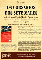 Dia 24, 5ª feira, às 17 horas, estarei na Biblioteca da Junta de Freguesia de Anjos, para conversar com os leitores e contar-lhes histórias da nossa História, sobre navegadores, aventureiros e conquistadores a propósito do meu novo romance, O Corsário dos Sete Mares - Fernão Mendes Pinto .