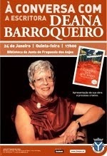 Deana Barroqueiro falará sobre o trabalho de pesquisa, como escritora, da paixão que nutre pela história de Portugal, sobre o que a move e a leva a fazer justiça à memória de certas personagens cruciais da nossa história II - Beja, 18 de Janeiro, Sexta-feira, 18.30 h Biblioteca Municipal de BejaRua Luís de Camões, s/n Apresentação de O Corsário dos Sete Mares - Fernão Mendes Pinto Deana Barroqueiro fala do seu romance, como veículo para melhor conhecimento as viagens de Descobrimento dos Portugueses no Oriente do Século XVI e o seu pioneirismo numa estratégia de Globalização I - Beja, 17 de Janeiro, Quinta-feira, 14 h Farei parte da MESA REDONDA sob o tema " AS VIAGENS... REPRESENTAÇÕES DO TURISMO NA LITERATURA " no âmbito do Projecto T2L - Tourism to Literature 2013 do Instituto Politécnico de BejaAuditório dos Serviços ComunsRua Pedro SoaresCampus do Instituto Politécnico de Beja Programa: